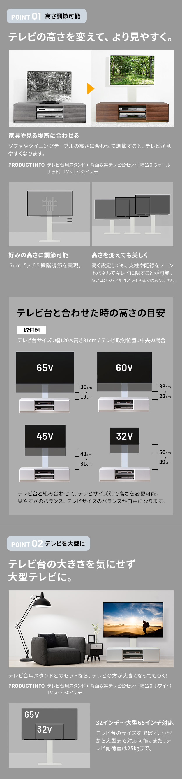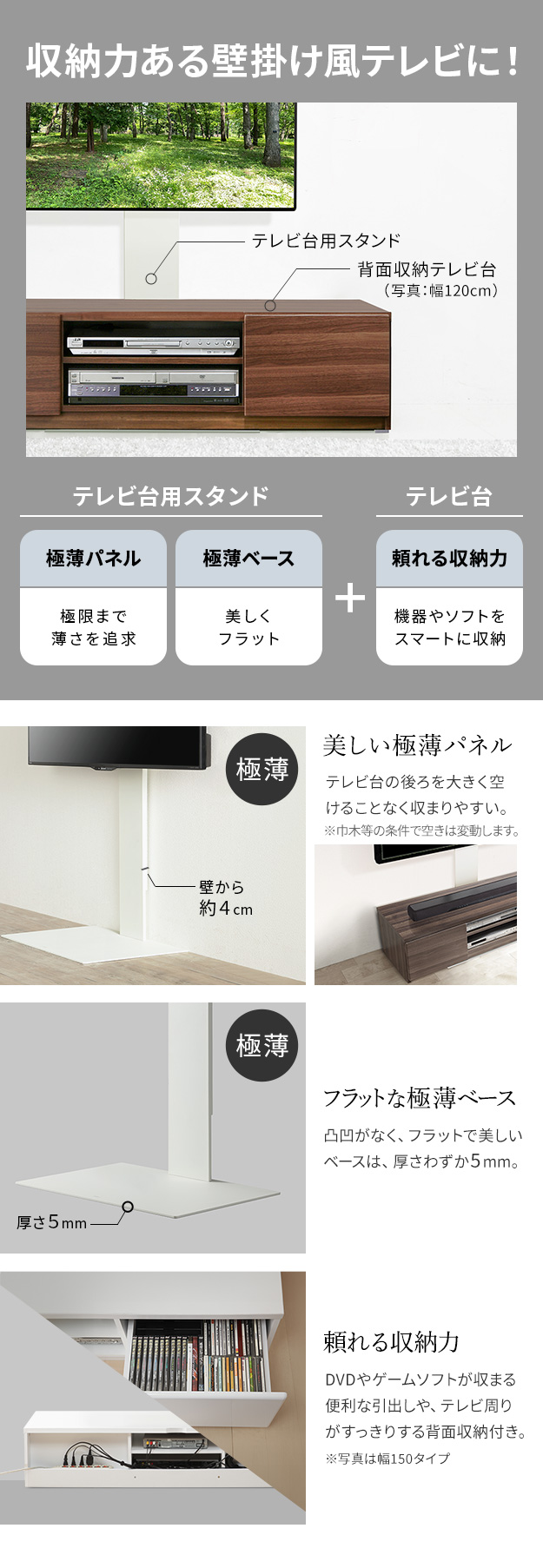 | テレビ台用スタンド + 背面収納テレビ台 >幅120cm >幅150cm >幅180cm |