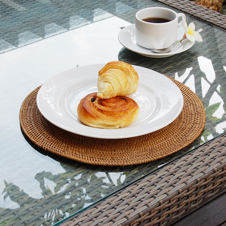 ▲リゾートスタイルのダイニングテーブルを演出する、アジアンコースター
