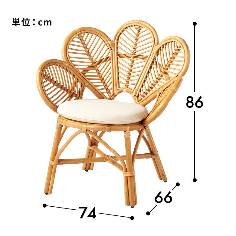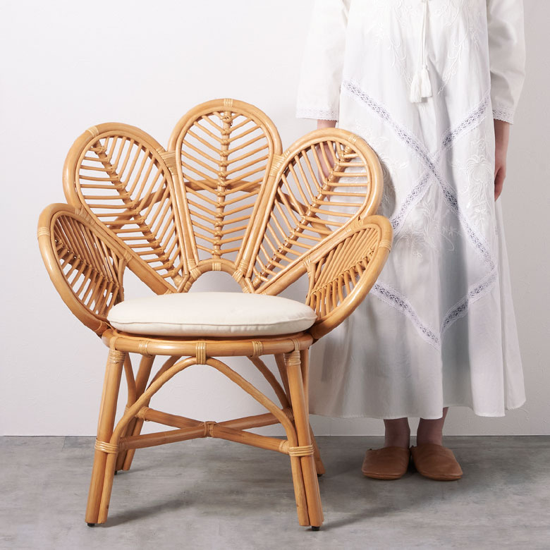 チェア ラタン 籐 天然 素材 椅子 フラワー 花 座面高 41.5cm ダイニング ミニ パーソナル 1人 掛 1P コンパクト 軽量 軽い カフェ 店舗 完成品 14154