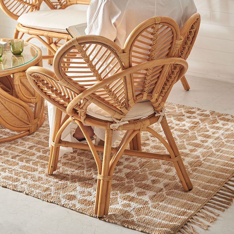 長くお使いいただくうちに表情が変わっていくのも、ラタンチェアーの魅力の一つ。