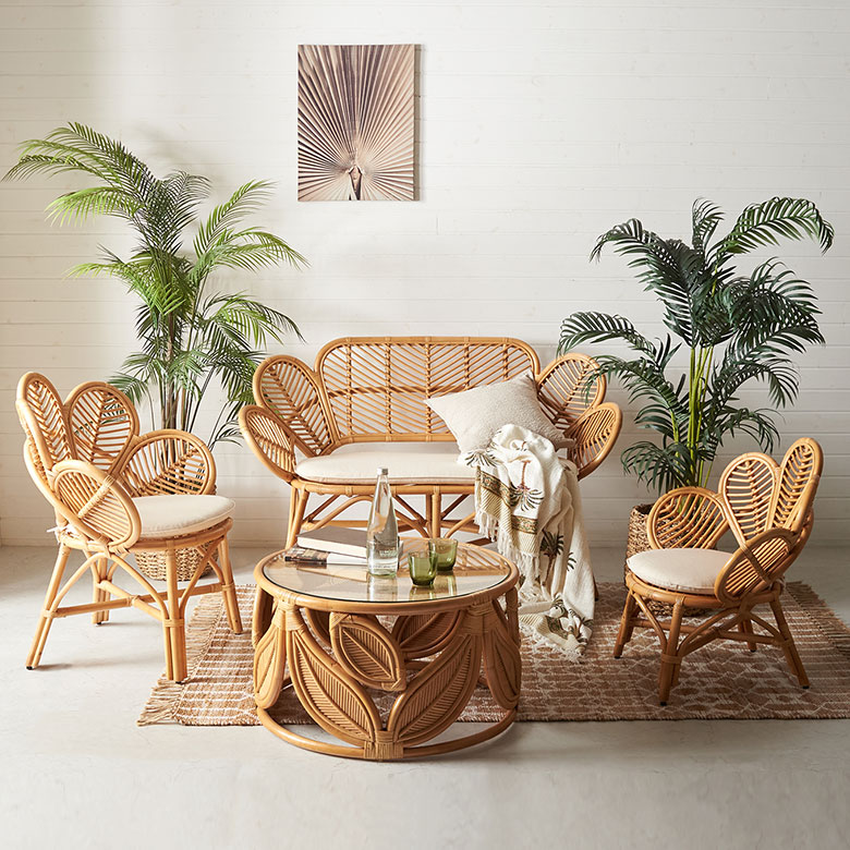ラタンの家具は単品使いはもちろん、シリーズ使いもおすすめ。