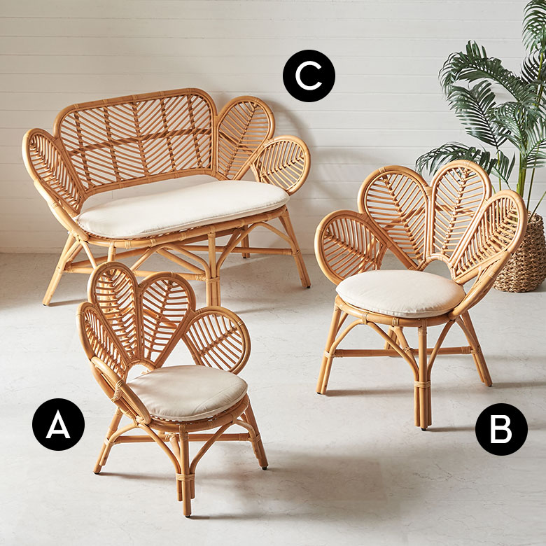 ラタンチェアーの単品使いはもちろん、ひとまわり小さいラタンチェアーや