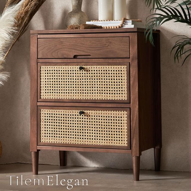 天然ラタン×天然木ウォールナットを組み合わせた「Tilem elegan(ティレム エレガン)」シリーズのアジアンモダンなチェスト。