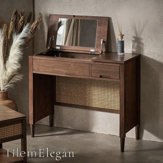 天然ラタン×天然木ウォールナットを組み合わせた「Tilem elegan(ティレム エレガン)」シリーズのアジアンモダンなドレッサーデスク。