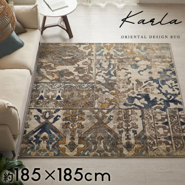 ラグ マット 185×185cm 正方形 ペルシャ 絨毯 風 じゅうたん ホット カーペット 床暖房 可 アンティーク 調 オールシーズン 春 夏 秋 冬 eg84318