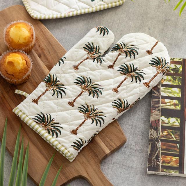 ミトン 鍋掴み なべ つかみ 片手 コットン 綿 100% ブロック プリント キルティング 椰子 ヤシ の 木 無花果 ギフト プレゼント メール便対応 34634