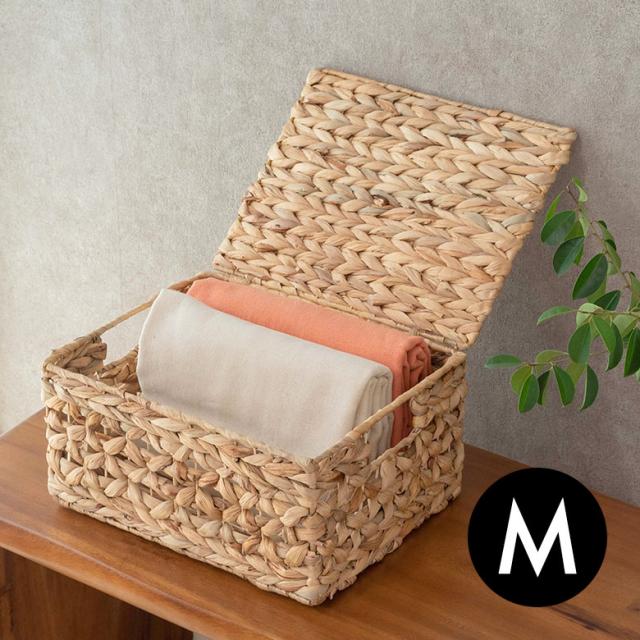 かご バスケット ウォーターヒヤシンス Mサイズ ふた付き 約 W 33cm D 26cm H 17cm カゴ 収納かご 収納バスケット 収納ボックス 荷物 おもちゃ 雑貨 衣類 収納 入れ ケース ハンドル 持ち手 付き おしゃれ 北欧 リゾート ナチュラル 西海岸風 塩系 男前 [51278]