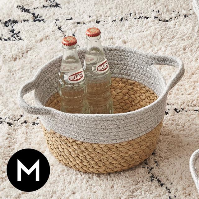 バスケット コットンロープ ラッシュ製 持ち手付き バイカラー Mサイズ 約 W 25 × D 25 × H 15 cm かごバスケット 収納 かご 籠 丸 円形 丸型 プランターカバー 鉢カバー 6号鉢対応 インテリア おしゃれ 北欧 観葉植物 西海岸 韓国 [67120]