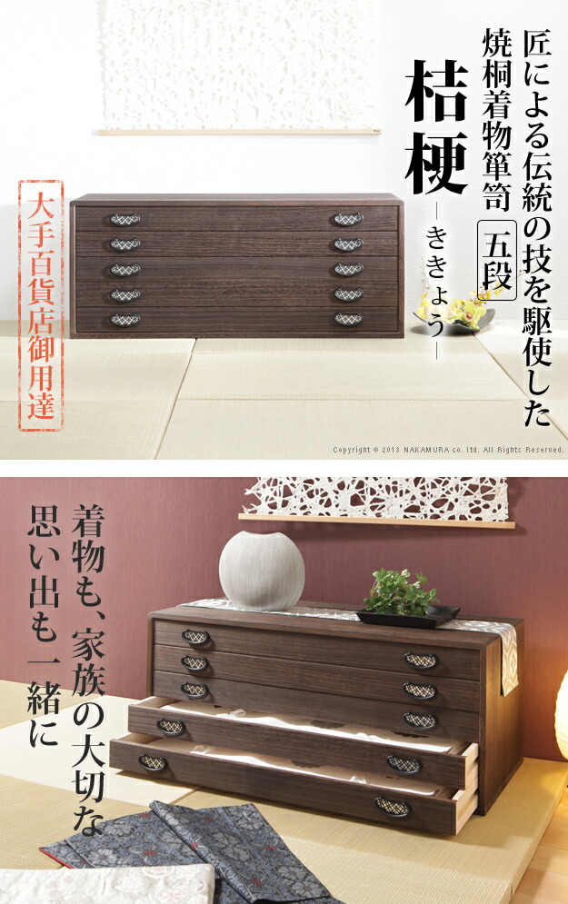 桐たんす 着物 収納 国産 焼桐着物箪笥 5段 桔梗 ききょう 桐箪笥 桐タンス 衣装タンス 衣装箱 桐衣裳ケース たんす チェスト 桐 桐天然木 たとう紙 保管 引出し 和箪笥 和たんす 和タンス 整理タンス 日本製