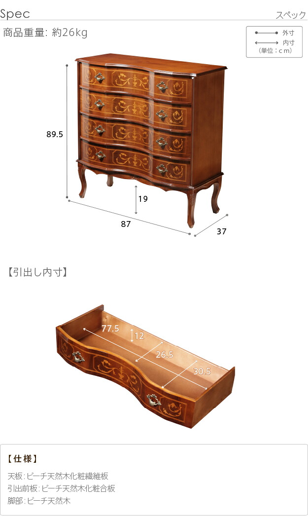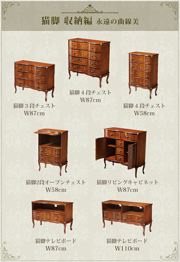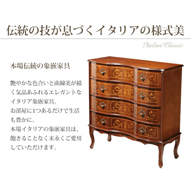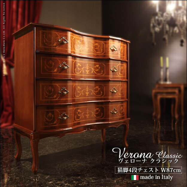 イタリア 家具 ヨーロピアン ヴェローナ クラシック 猫脚4段チェスト 幅87cm サイドチェスト 猫脚 ヨーロッパ家具 クラシック 輸入家具 アンティーク イタリア製 ブラウン 天然木 沖縄 一部離島は別途送料