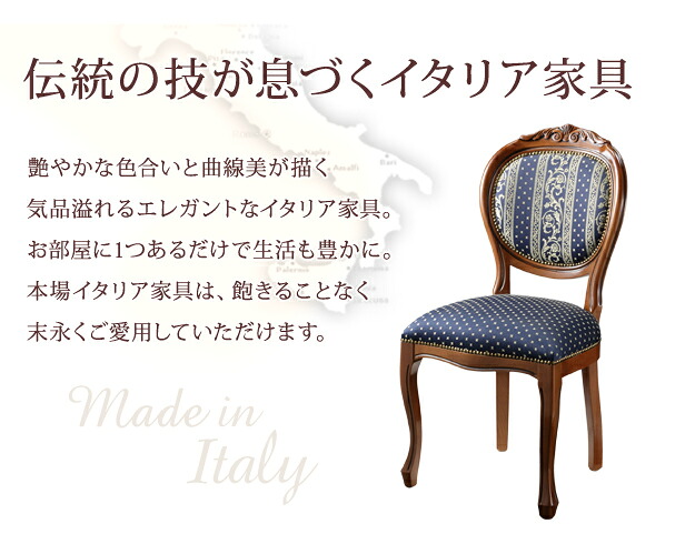 イタリア 家具 ヨーロピアン ヴェローナ クラシック ダイニング チェア ヨーロピアンブルー 猫脚 ヨーロッパ家具 クラシック 輸入家具 椅子 チェア アンティーク イタリア製 青 ドット柄 天然木