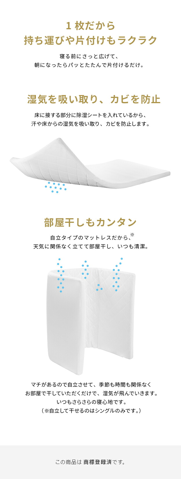 フトンマットレスという、睡眠革命。湿気対策 除湿布団 吸湿 調湿 軽い 防カビ 防ダニ 消臭 高反発 体圧分散 フローリング