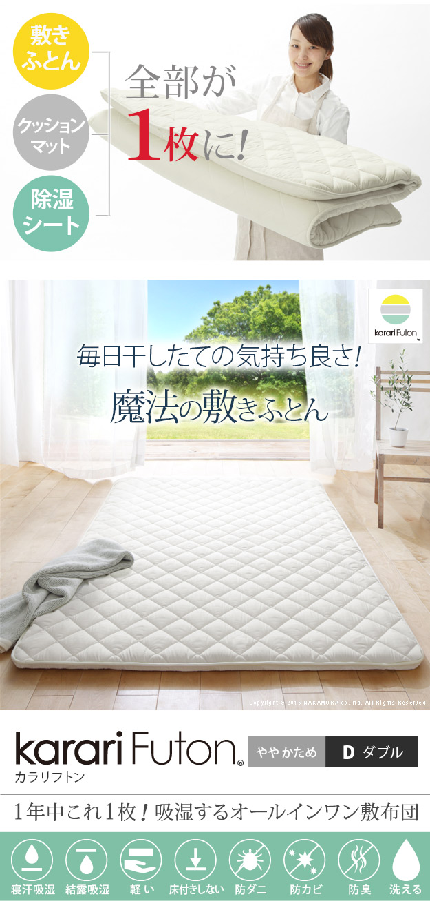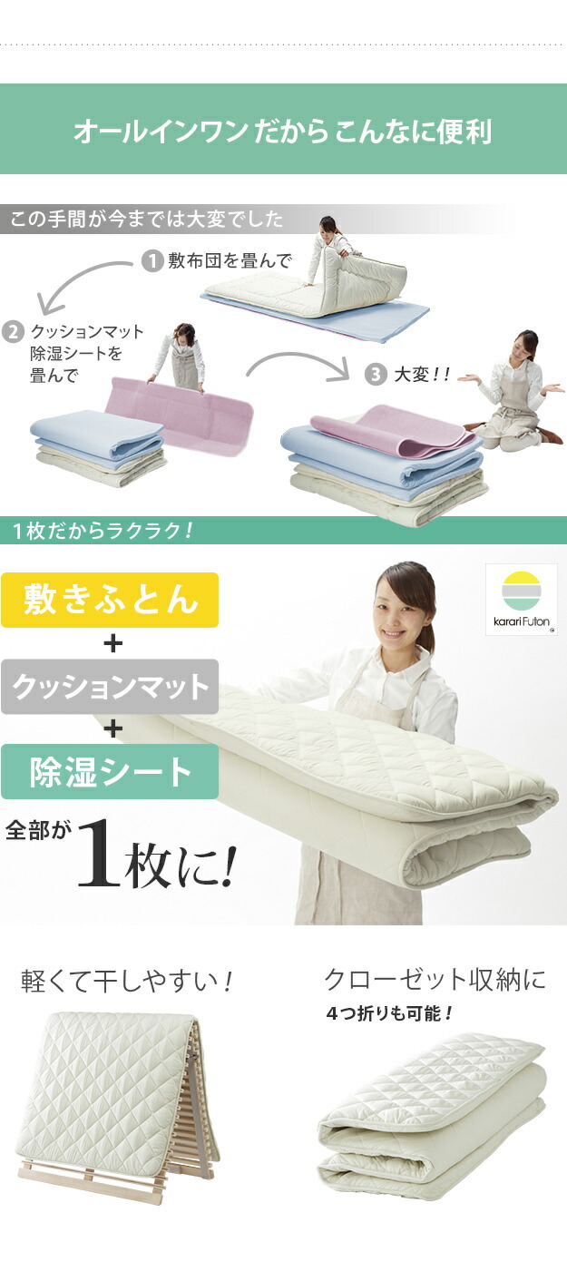 敷き布団 ダブル 除湿 吸湿する1枚で寝られる オールインワン敷布団 カラリフトン ダブル 敷布団 洗える 防ダニ 三つ折り 除湿シート 吸湿 沖縄 一部離島は別途送料見積もり U0100174