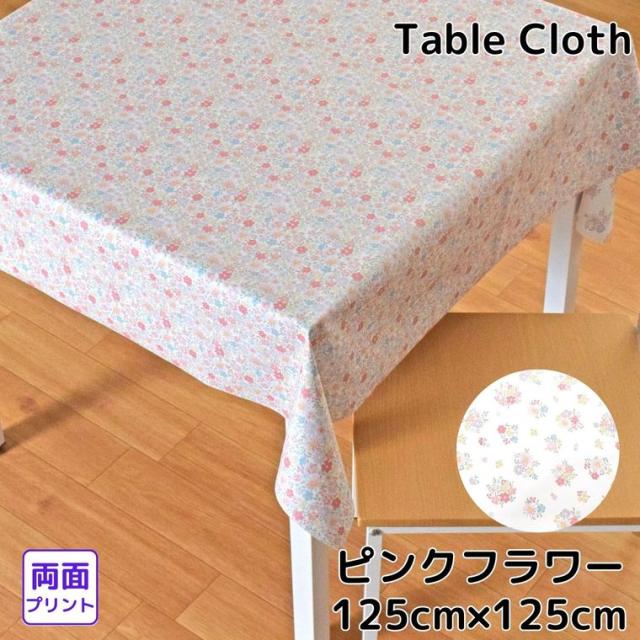 テーブルクロス 撥水 ビニール 花柄 リバーシブル 約125×125cm 幅125cm 耐水 防水 おしゃれ お洒落 両面使える リビング ダイニング モダン かわいい 可愛い 北欧 塩化ビニル PVC メール便送料無料 MGR-115 ピンクフラワー