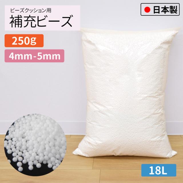 補充用ビーズ 4mm-5mm 250g 国産 少量 約18L ビーズクッション用 日本製 発泡ビーズ 中身 中材 詰め物 お手持ちのクッションの補充に へたりにくい