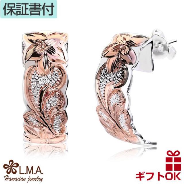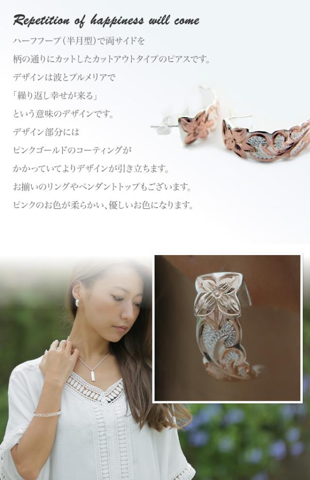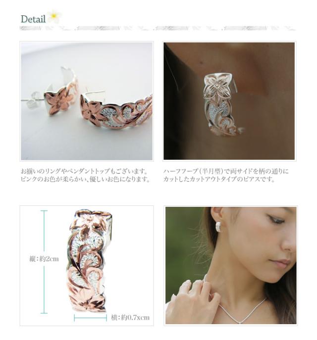 ハワイアンジュエリー ピアス シルバー925 ピンクゴールド ハーフフープ フープ 半月型 半円 カットアウト プルメリア 花 スクロール 波 レディース イヤリング 送料無料 ギフト 金属アレルギー