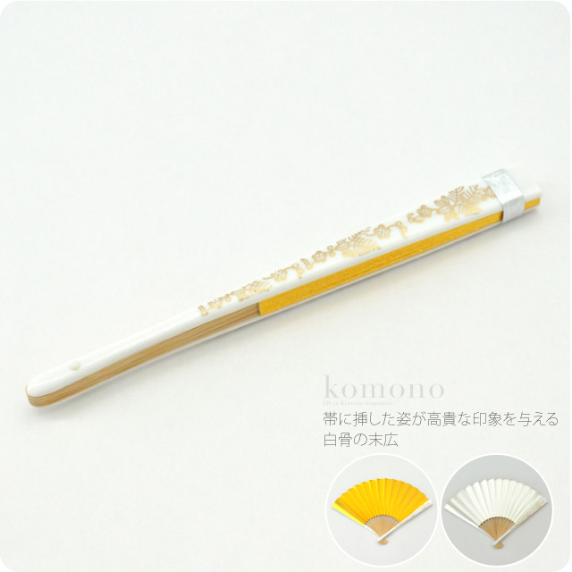 帯に挿した姿が高貴な印象を与える白骨の末広です。