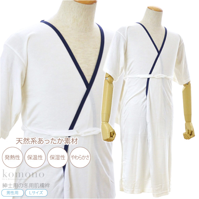 | 備考 | : | 紳士用の冬用肌襦袢です。 着るとあったか発熱繊維で冬の寒さも平気です。 使用素材は「ぬくいと(R) WOOL」水分を吸収することで素材が温かくなる発熱性。 ウール混による空気層の保温交換。素材のうるおい感。 原料の特性を生かしたふんわりやわらかい日差しを感じていただけます。 裾は膝丈まで長さがあるのでステテコを穿かなくても大丈夫です。 Mサイズはこちらから購入できます。 LLサイズはこちらから購入できます。 | ||||||||||