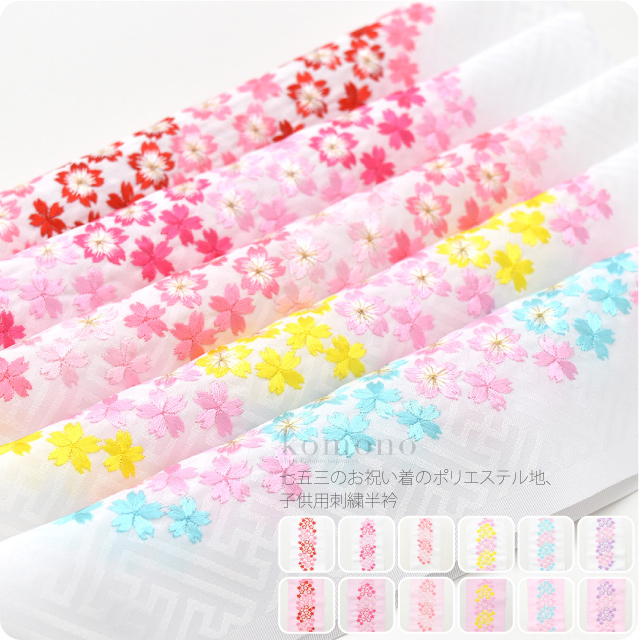 七五三 半衿 刺繍 半襟 通年用 日本製 子供用 刺繍半衿 桜柄 ポリエステル 753 刺繍衿 刺繍襟 3歳 三歳 7歳 七歳 礼装 おしゃれ 子供 女の子 女児10019158