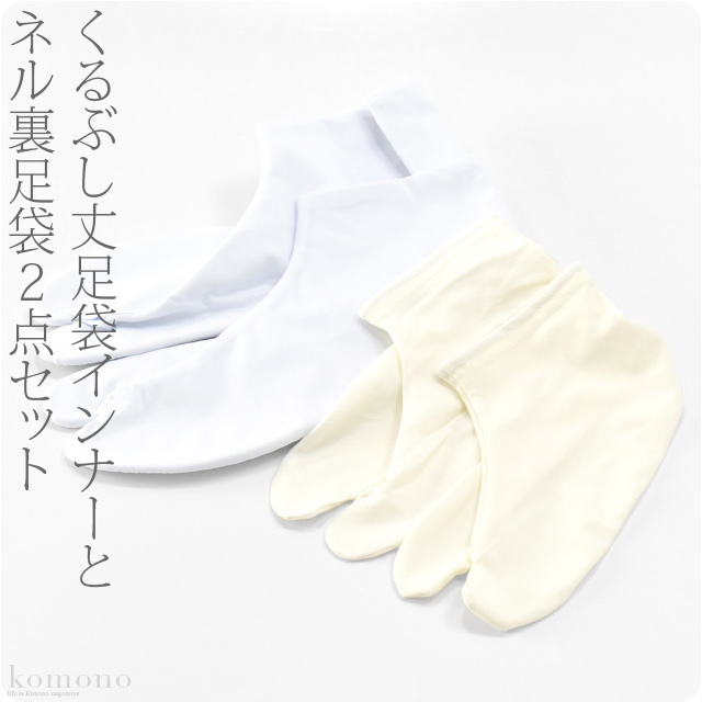 つま先まで暖かなくるぶし丈発熱足袋インナーとネル裏足袋重ね履きセットです。