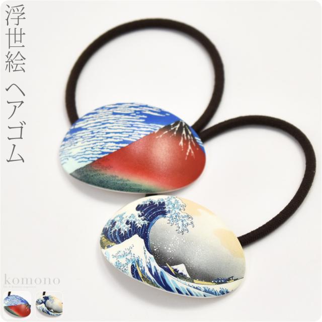 和装 髪飾り 小紋 紬 浴衣 通年用 日本製 ヘアゴム 葛飾北斎 髪留めゴム おしゃれ 大人 レディース 女性10022010