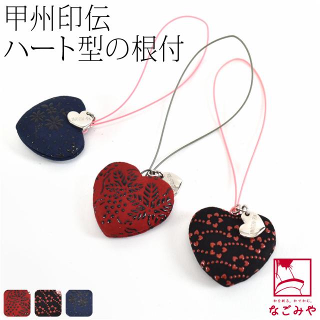 印傳屋謹製の可愛らしいハート型の根付です。