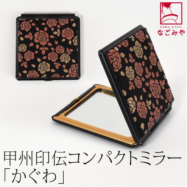 和柄 コンパクトミラー 通年用 日本製 印傳屋 かぐわ ミラー 手鏡 伝統的工芸品 甲州印伝 ブランド 鹿革 本革 レザー 漆 おしゃれ 大人 レディース 女性 10024504