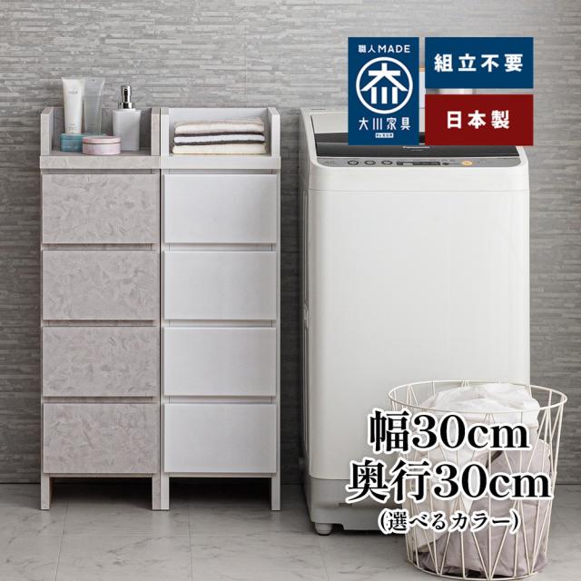 エペル 幅30cm | 奥行30cm 完成品 ランドリーチェスト 薄型 国産 【 完成品 ランドリー収納 スリム ランドリー収納棚 日本製 引き出し4段 巾木よけ付き 白 グレー おしゃれ収納