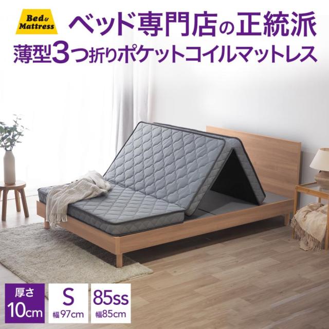 【New】マットレス 三つ折り 厚み10cm 薄型 シングル スモールシングル セミシングル 3つ折り ポケットコイル SM103P3U 高密度 ベッドマット 折りたたみ 収納 片面仕様 寝具 快眠 蒸れない 腰痛 ロールパック 高反発 お昼寝 ごろ寝 日時指定可