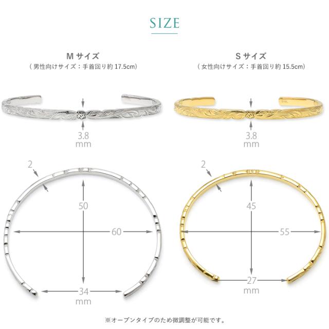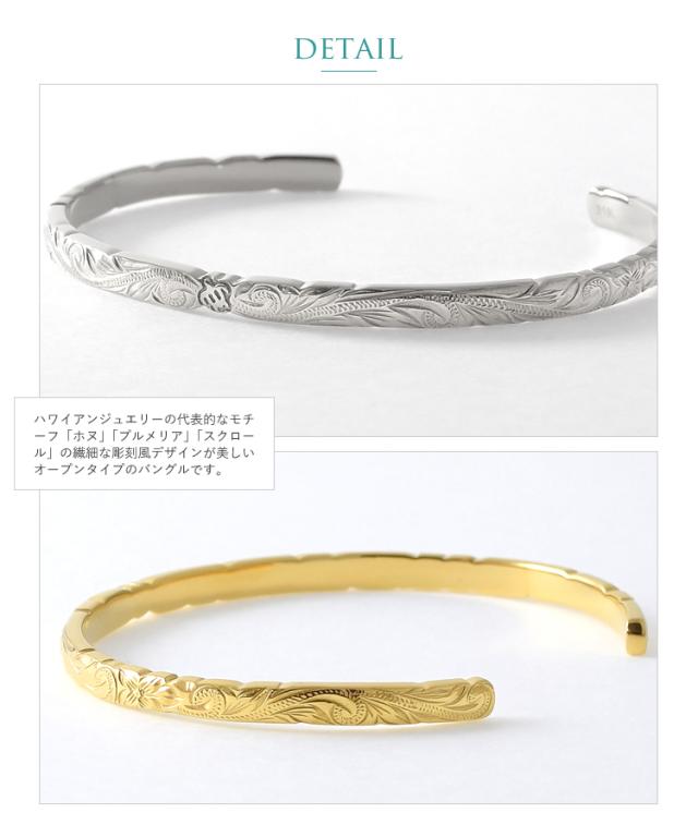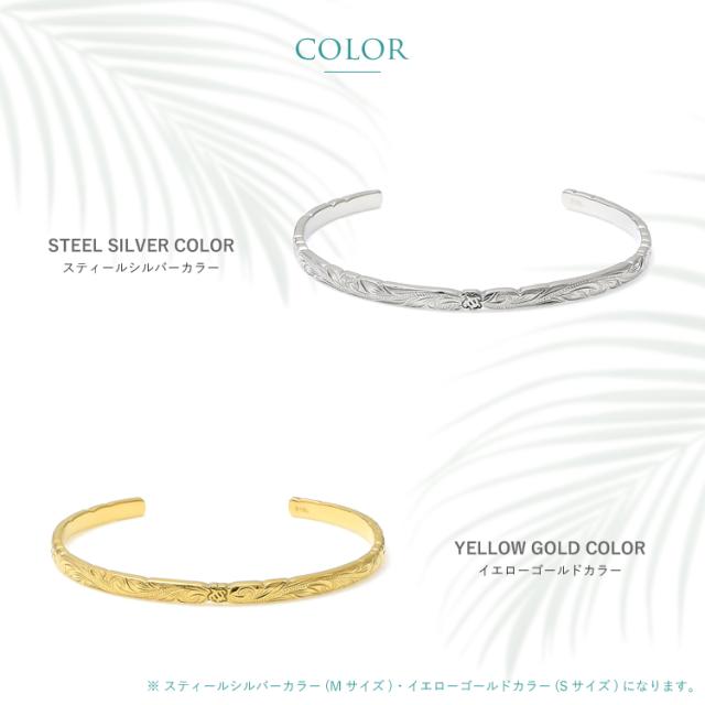 ハワイアンジュエリー ペアバングル ペアブレスレット つけっぱなし 刻印 ステンレス 金属アレルギー対応 大人 シンプル ホヌ スクロール おしゃれ ハワイアン スティールシルバーカラー イエローゴールドカラー サージカルステンレス 2本セット価格 (gbsg114pair)
