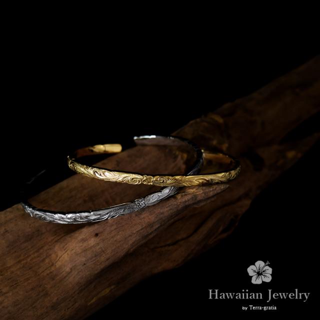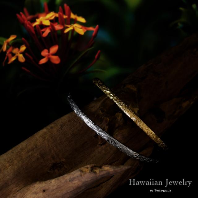 ハワイアンジュエリー ペアバングル ペアブレスレット つけっぱなし 刻印 ステンレス 金属アレルギー対応 ホヌ ハワイアン スティールシルバーカラー イエローゴールドカラー サージカルステンレス 2本セット価格 テラグラティア Terra-gratia PairBangle gbsg114pair