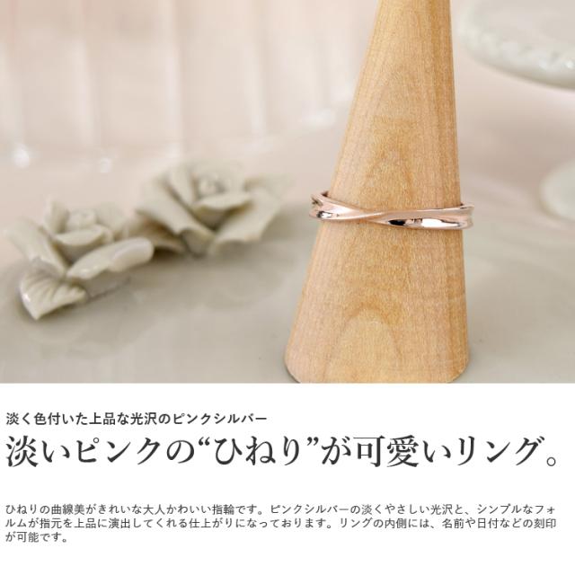 リング レディース ピンクシルバー 刻印 シンプル ひねり メビウス 細身 上品 おしゃれ 指輪 偶数サイズ ピンクゴールドカラー Silver 925 jlr053psv