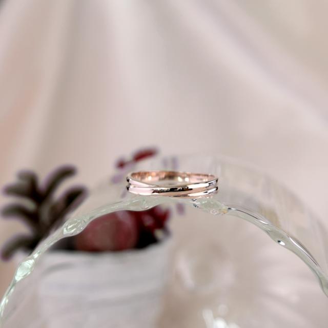 なめらかなクロッシングラインが美しい、大人かわいいレディースリングです。ピンクシルバーの淡く色付いたやさしい光沢が、 指元を上品に演出してくれる仕上がりになっております。シンプルコーデアイテムとしても最適な指輪です。 リングの内側に、名前や日付などの刻印を無料でお入れいたします。誕生日、記念日、クリスマス、ホワイトデー、母の日や自分へのご褒美プレゼントなど 特別なギフトにおすすめです。