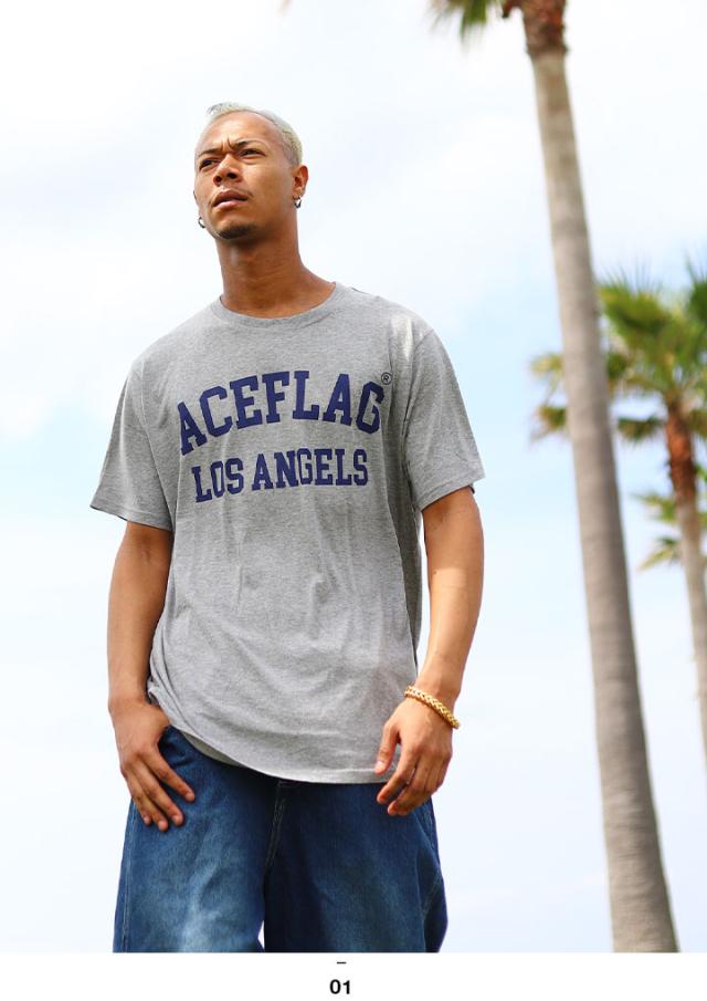 ACEFLAG Tシャツ 半袖 メンズ 春夏用 グレー 杢グレー 大きいサイズ おしゃれ エースフラッグ アーチロゴ アメカジ シンプル b系 ヒップホップ ストリート系 西海岸 ファッション ハイ ブランド 服 AF-TS-TS-041