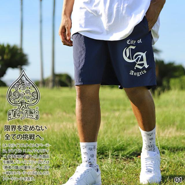 ACEFLAG ハーフパンツ ナイロン 海パン 半ズボン 短パン メンズ 春夏用 紺/黒 大きいサイズ エースフラッグ ひざ上 撥水 速乾 b系 ヒップホップ ファッション ダンス ストリート系 ブランド 新作 AF-HP-NY-002