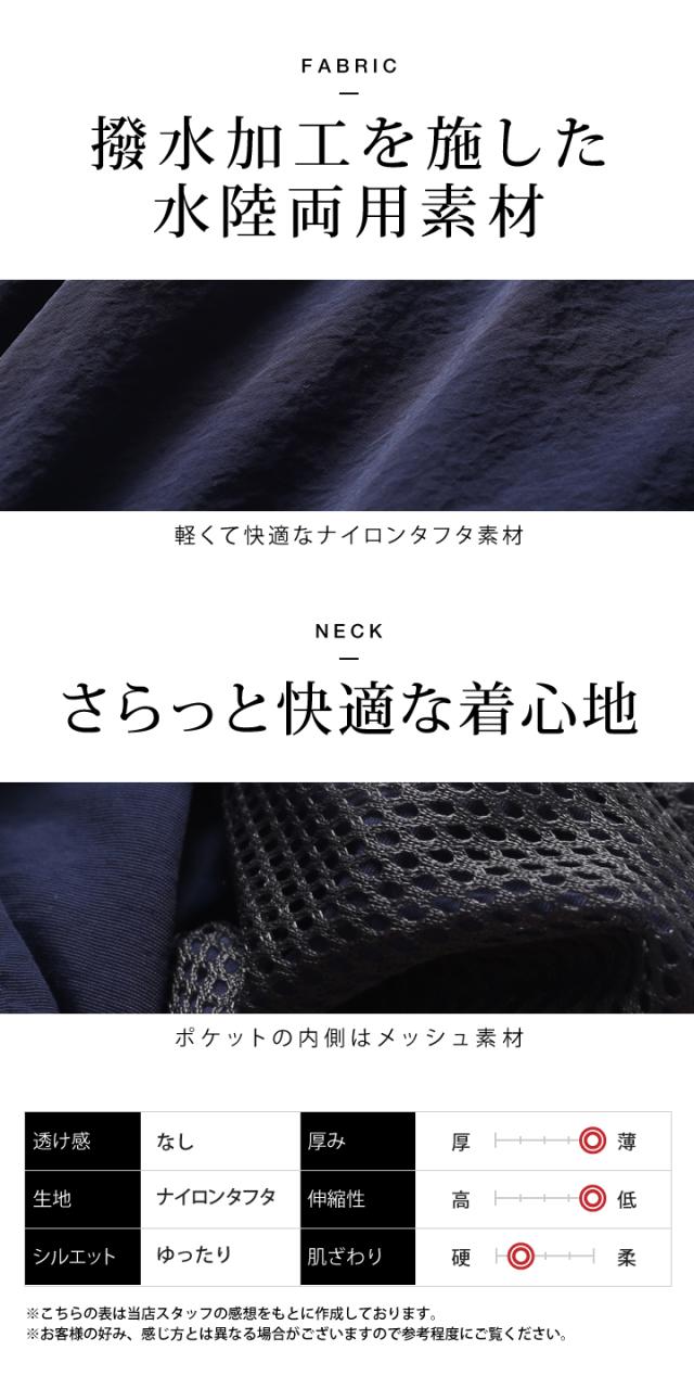 素材は、夏でも快適に穿ける厚みと軽量感が人気のナイロンタフタ。表面にツヤとシャリシャリ感があるおしゃれな生地です。撥水加工を施しているので、街穿きや水辺での使用も可能です。