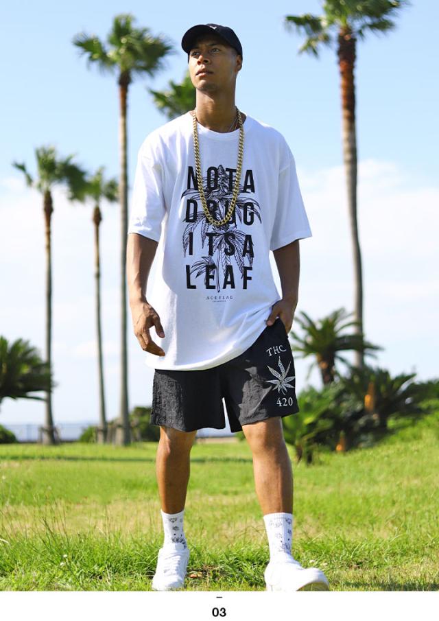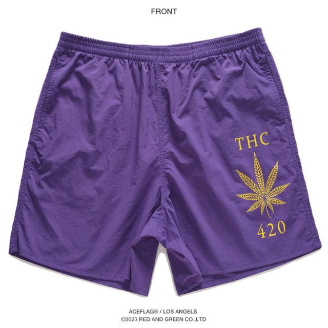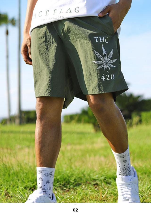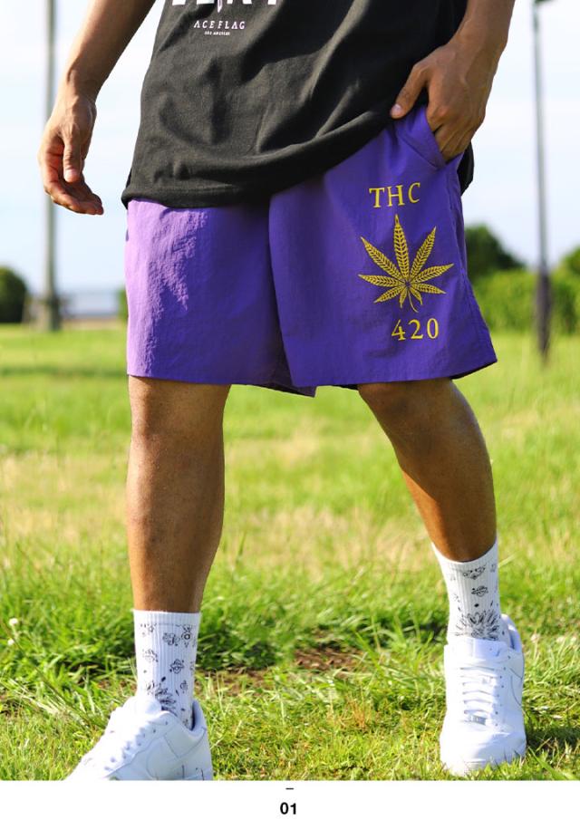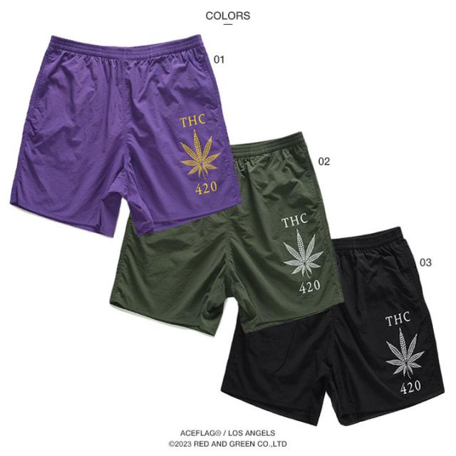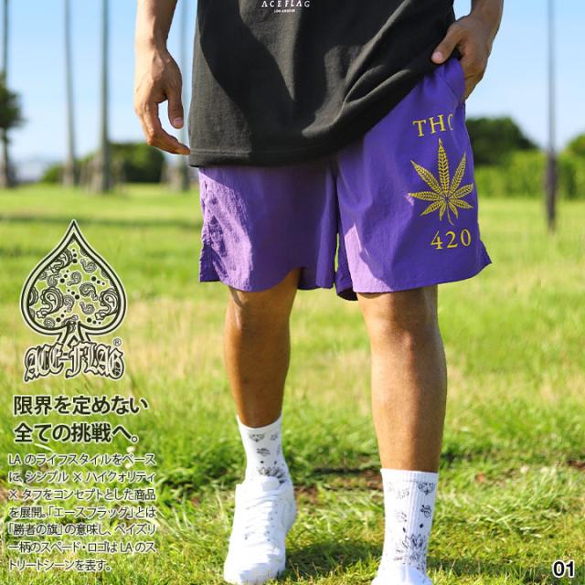ACEFLAG ハーフパンツ ナイロン 半ズボン 短パン メンズ 全3色 大きいサイズ エースフラッグ ひざ上 大麻 マリファナ ヘンプ ロゴ ナイロンパンツ 速乾 撥水 b系 ストリート系 ブランド AF-HP-NY-003