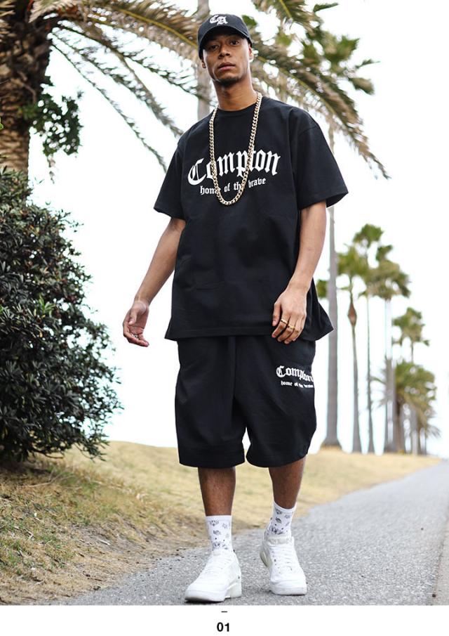 90年代に流行した「Compton」ロゴと共に、サグの故郷を表す「home of the brave」をドロップした、スウェットハーフパンツ。