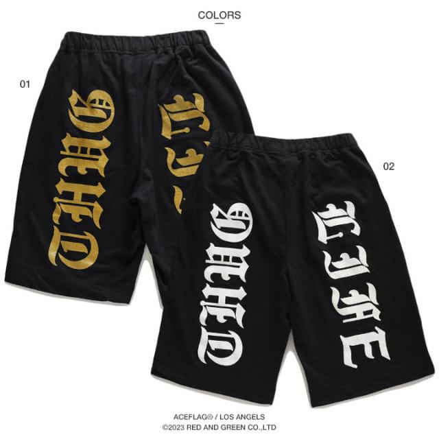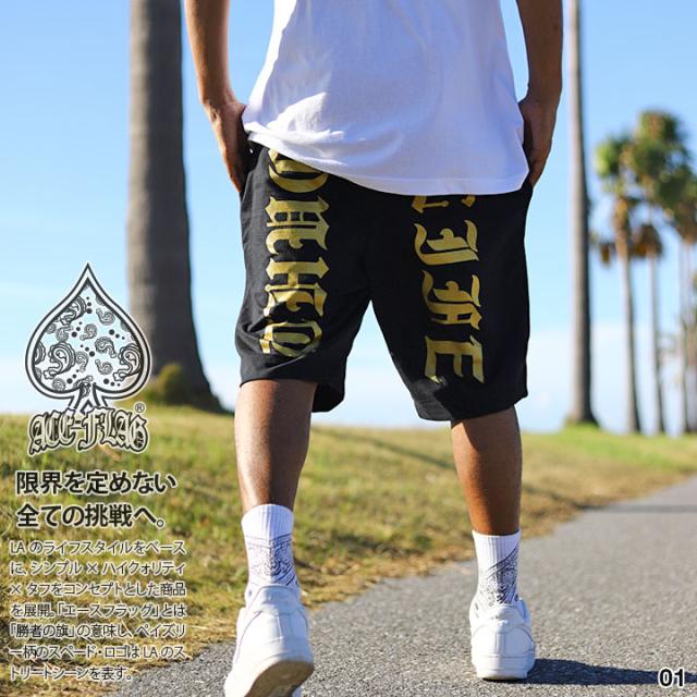 ACEFLAG ハーフパンツ スウェット 裏パイル 半ズボン 短パン メンズ 春夏用 黒 大きいサイズ エースフラッグ パンツ おしゃれ ロゴ THUG LIFE サグライフ b系 ヒップホップ ファッション 夏 新作 AF-HP-SW-025