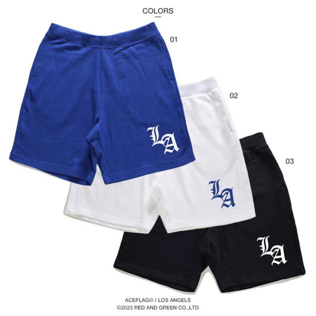ACE FLAG ハーフパンツ スウェット 半ズボン 短パン メンズ 青/白/黒 大きいサイズ エースフラッグ LA エルエー ロサンゼルス ギャング ローライダー b系 ヒップホップ ストリート系 新作 AF-HP-SW-026