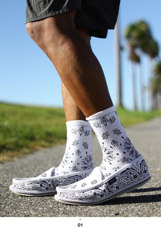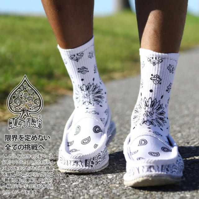 ACEFLAG 靴下 ソックス ミドル丈 メンズ レディース 春夏秋冬用 白 エースフラッグ 普通丈 クルーソックス スニーカーソックス 総柄 ペイズリー柄 b系 ヒップホップ ファッション ストリート系 ブランド AF-SO-TH-010