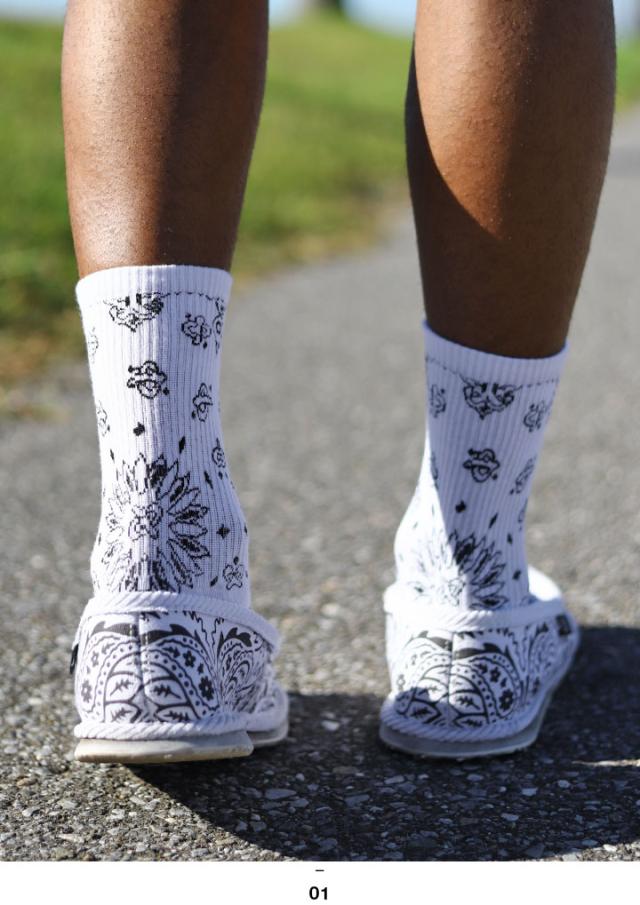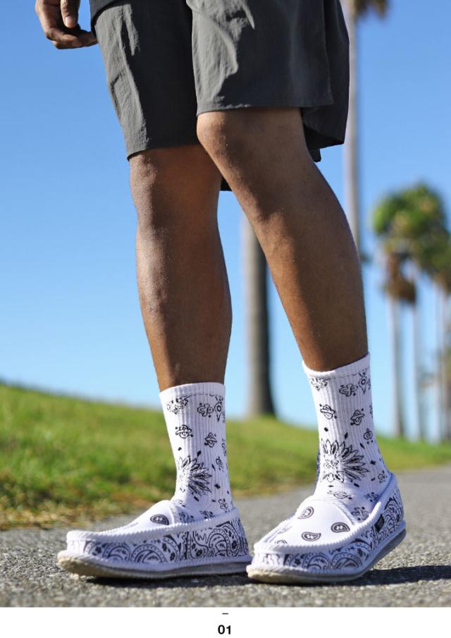 【オススメ】22-27cm おしゃれ バンダナ柄 派手 ミドルソックス ミドル丈ソックス レッグウェア ダンス かっこいい スポーツソックス モノグラム柄 白ソックス 短い アメカジ ゴルフ