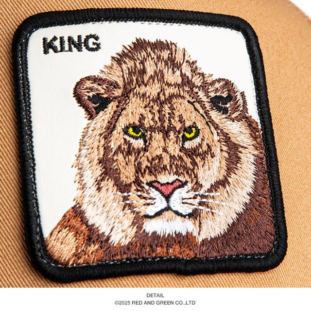動物の「ライオン/King Lion」と掛けた“王者の風格“を象徴する「King」と共に、「ライオン」モチーフのレザーパッチをドロップした、高品質のメッシュキャップ。