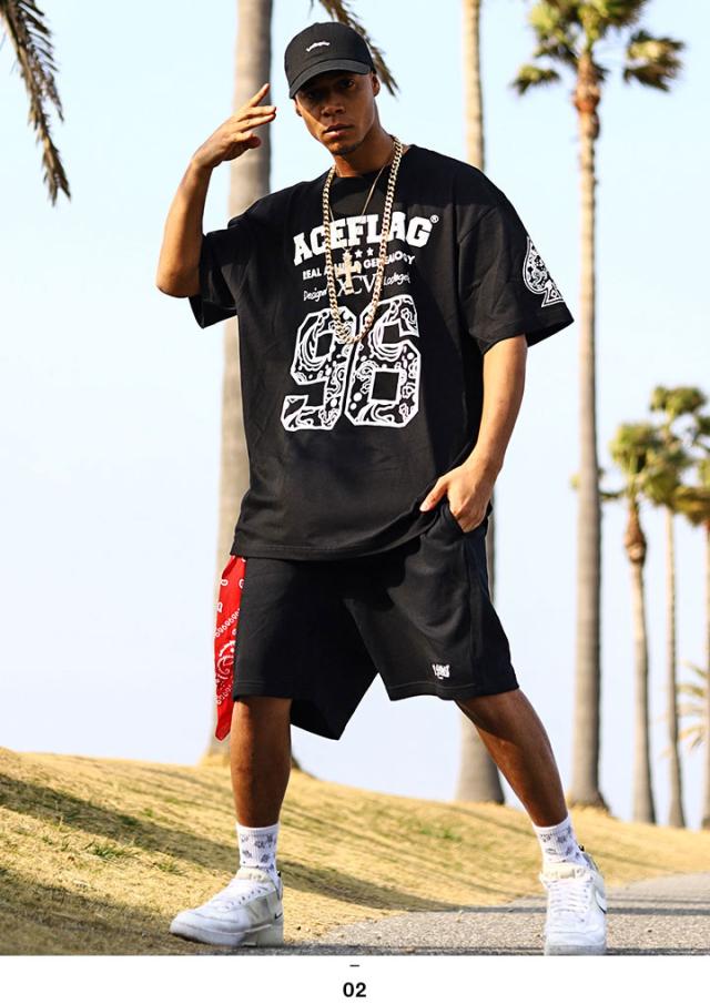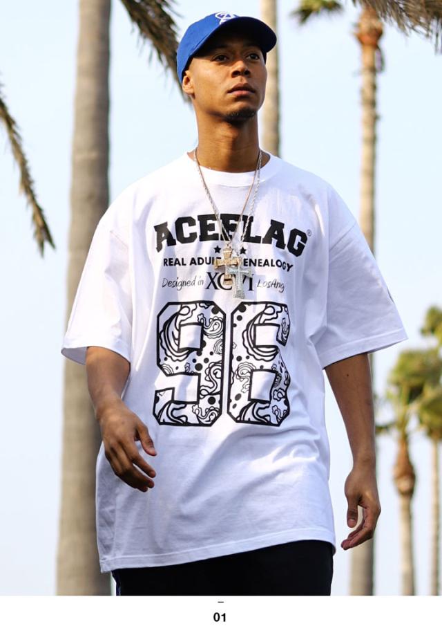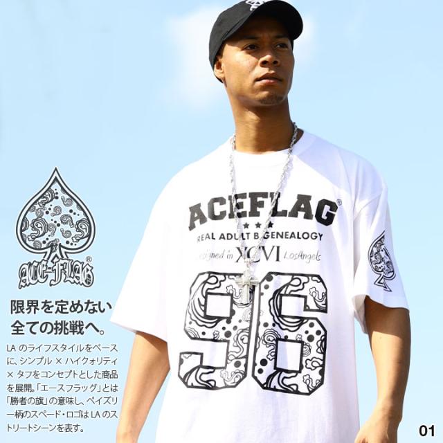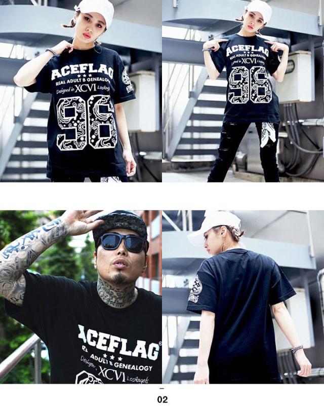 ACEFLAG Tシャツ 半袖 メンズ レディース 春夏用 白 黒 大きいサイズ エースフラッグ スペード ロゴ ペイズリー柄 バンダナ柄 ナンバー 96 b系 ヒップホップ ファッション ストリート系 ブランド 服 AF-TS-TS-007
