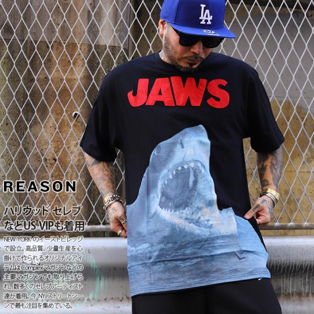 残り僅か【40%OFF】REASON × Jaws ジョーズ Tシャツ 半袖 メンズ 黒 大きいサイズ 限定 コラボ 公式グッズ リーズン ボックスロゴ 動物 魚 アニマル 海 映画Tシャツ ビッグシルエット b系 ヒップホップ ファッション ストリート系 ブランド 服 2025春夏 JAW10