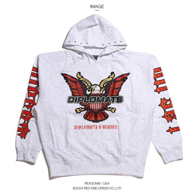 ラスト1点【44%OFF】REASON × Dipset パーカー ブランド フーディ 長袖 スウェット 裏起毛 メンズ 白 大きいサイズ ディプセット The Diplomats ディプロマッツ コラボ 公式 リーズン フードパーカー 総柄 b系 ヒップホップ ファッション ストリート系 ハイ 服 DIP09