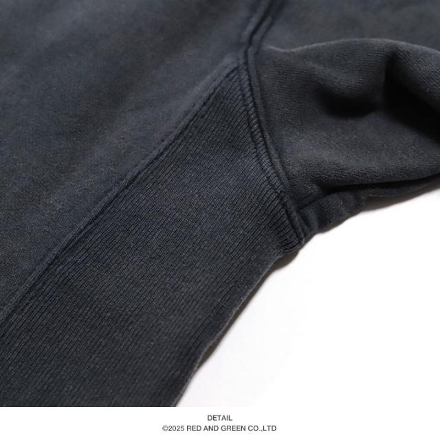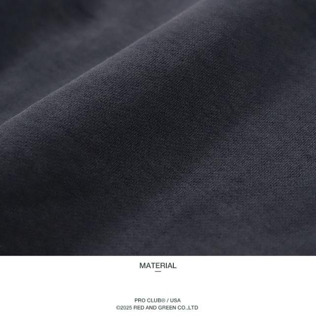 生地は、厚手で柔らかく肌触りが良い快適な着心地のヘヴィーウェイトスウェット(コットン100%)。適度な厚みで使いやすく、重ね着しても着ぶくれしにくいため、シャツやアウターとのコーディネートにも最適です。