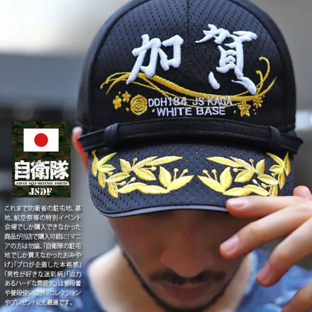 自衛隊 グッズ 護衛艦 かが 海自 帽子 キャップ 将官用 識別帽 隊帽 将官モール メンズ 黒 海上自衛隊 ヘリコプター搭載護衛艦 加賀 DDH184 部隊マーク 刺繍 モール付き あご紐付き 速乾 防臭 抗菌 おしゃれ C59SS-TZ