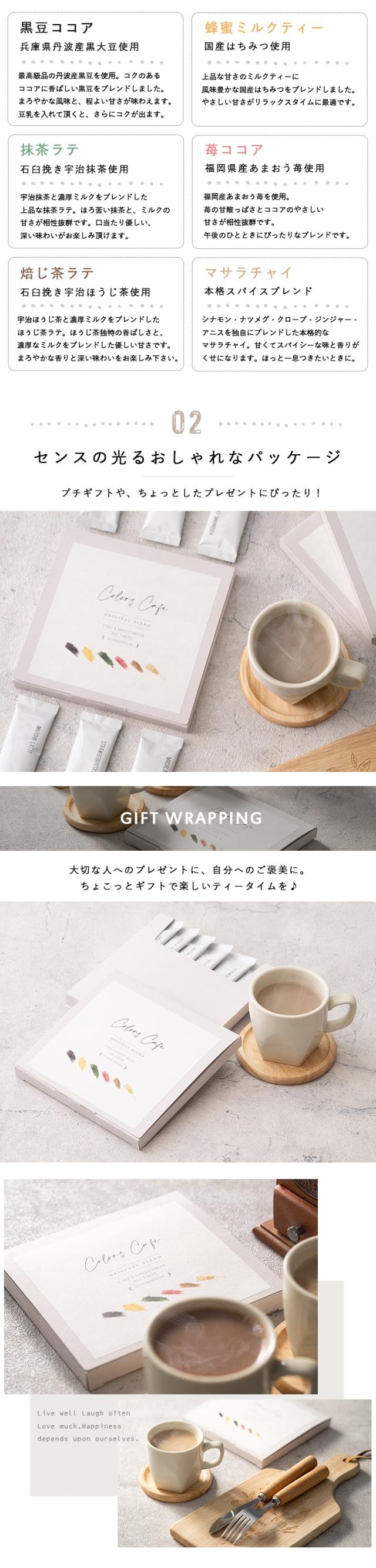 コーヒー 紅茶 ギフト プレゼント ラテ カラーズカフェ オールテイスト 6種セットココア ミルクティー かわいい おしゃれ 誕生日 お返し 女性 20代 30代 40代 母 詰め合わせ メール便送料無料