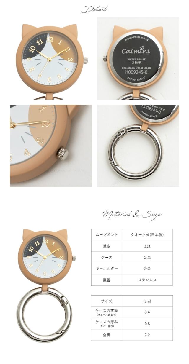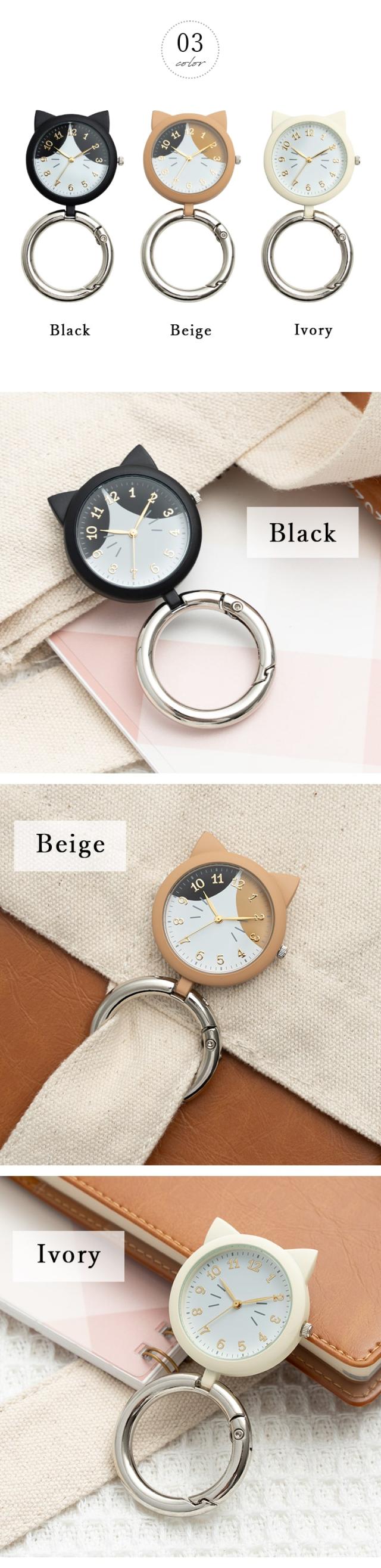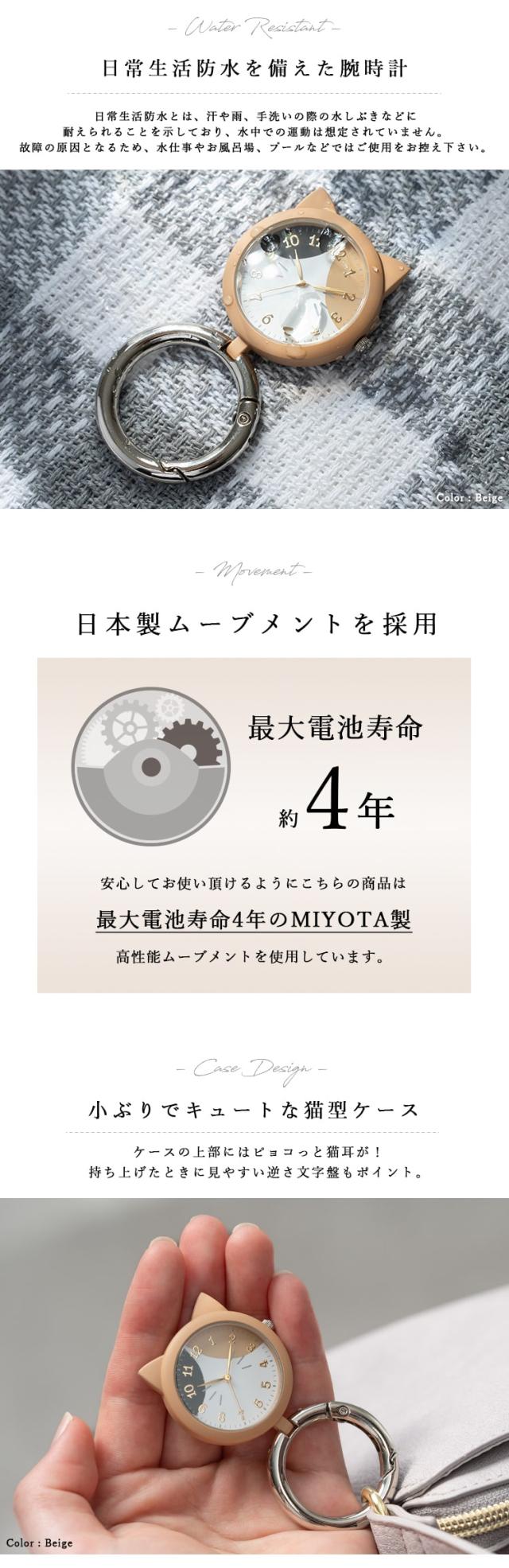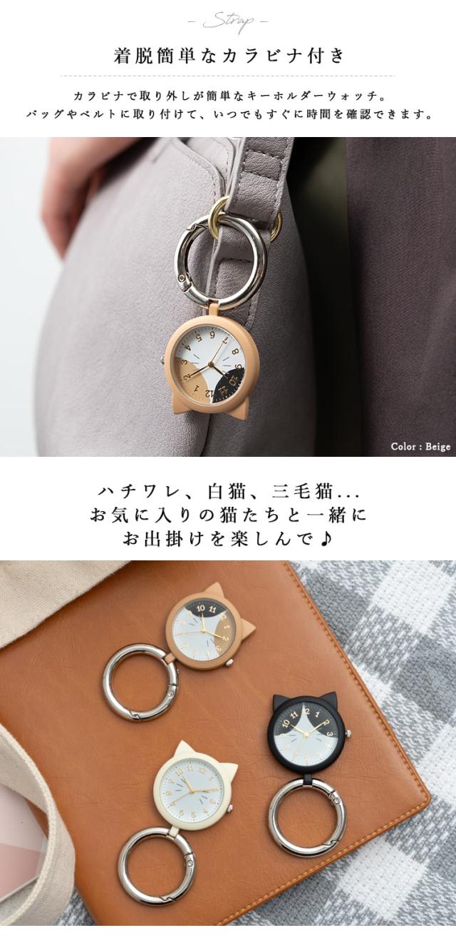 懐中時計 レディース 3気圧防水 4年電池寿命 猫モチーフ カラビナ ウォッチ フック バッグチャーム シンプル カジュアル キッズ 子供 プレゼント ギフト 1年間のメーカー保証付